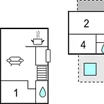 Det finns även torktumlare samt en badtunna, en dusch och en tvättmaskin.